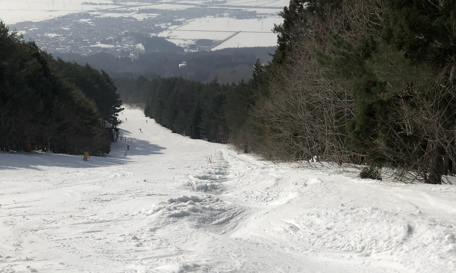 気温高め。白いゲレンデも