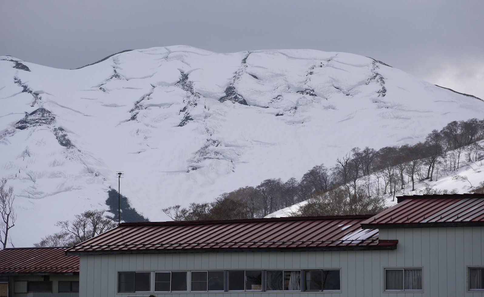 駐車場からも月山、姥ヶ岳、湯殿山のクラック、