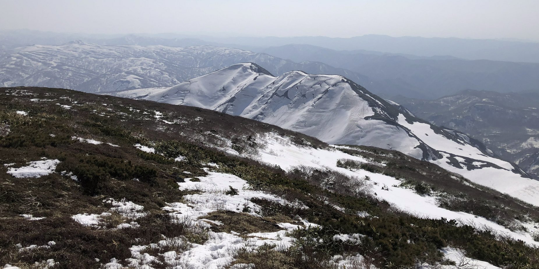 287移動で月山がくっきり見えて、朝日連峰も