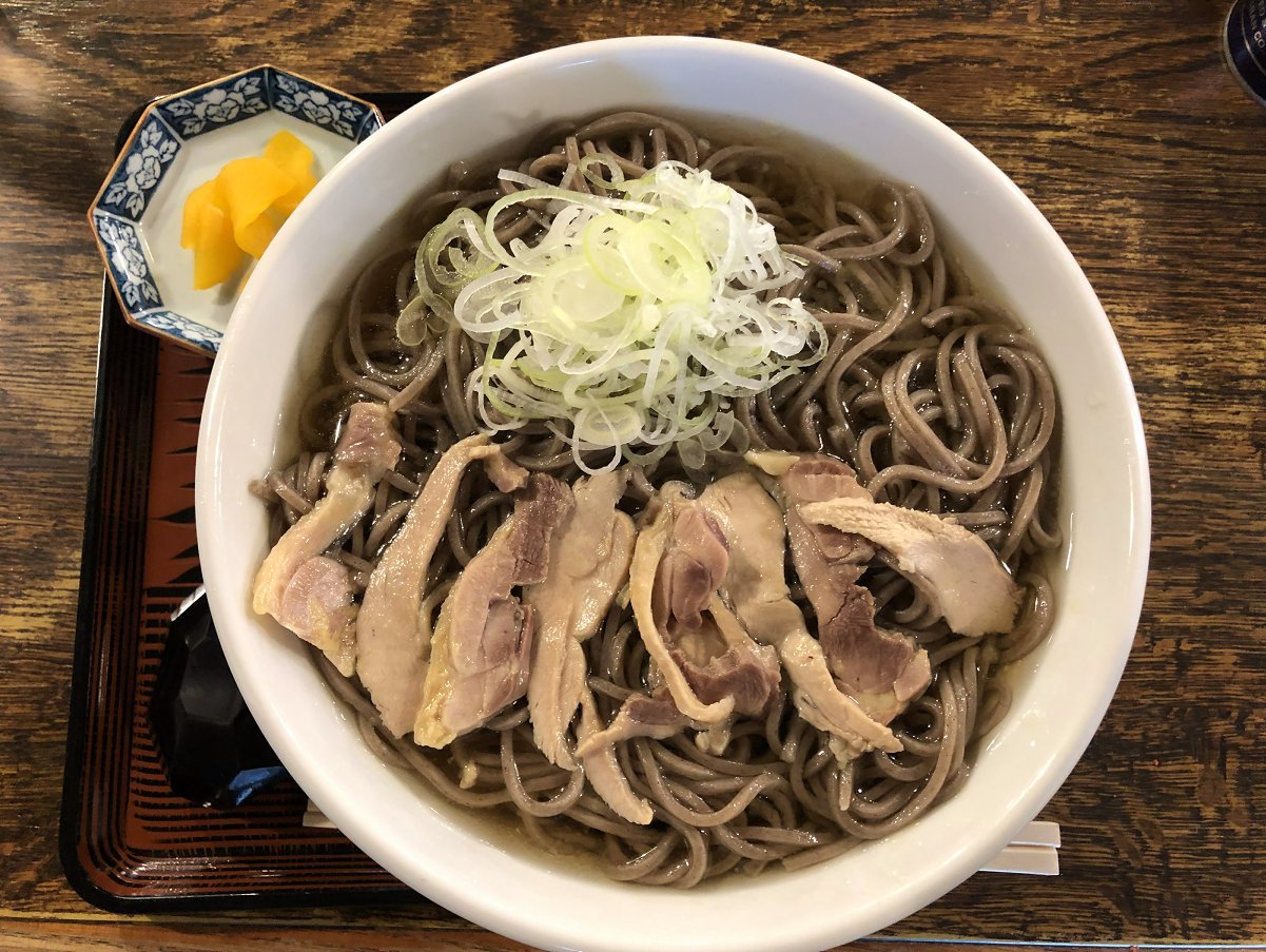 冷たい肉そばを食べて
